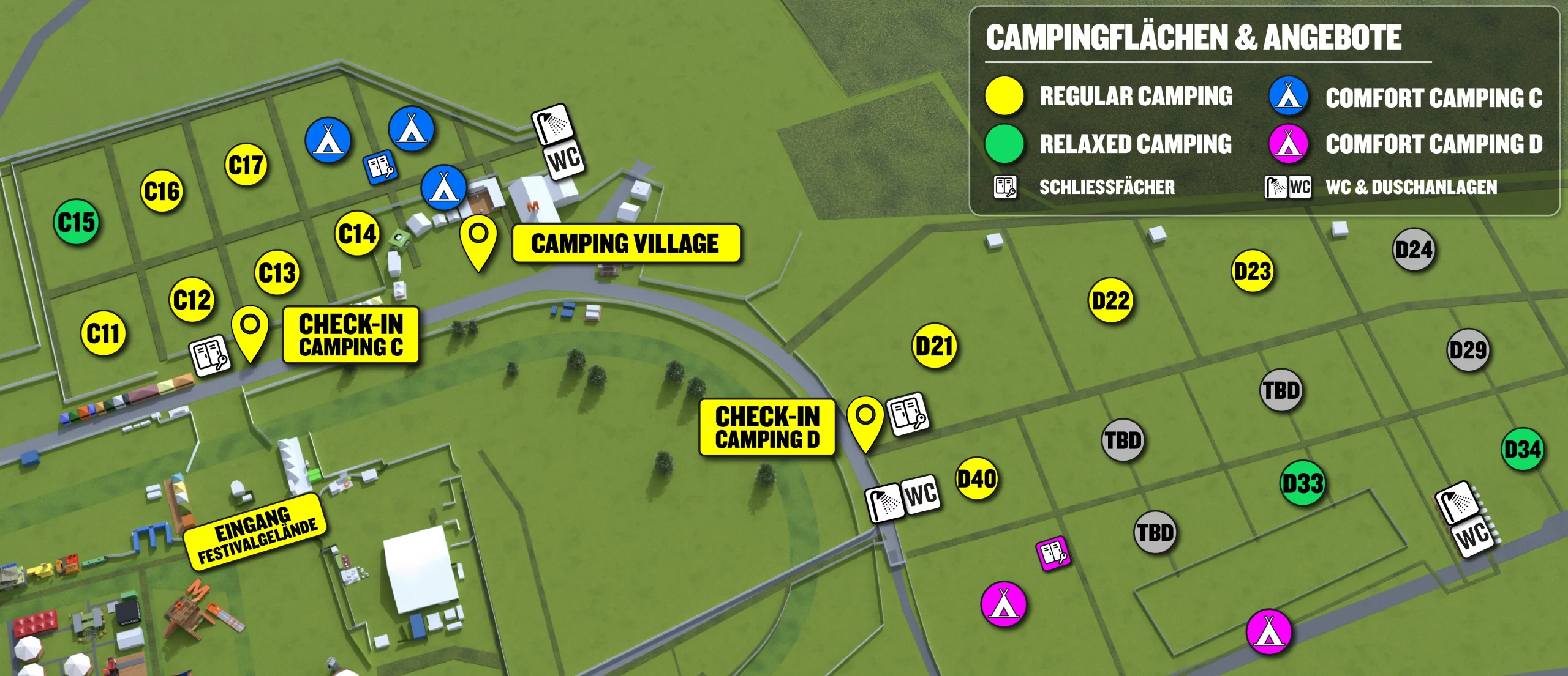 - Unterkunft gemäss Ticket im Camping C oder D